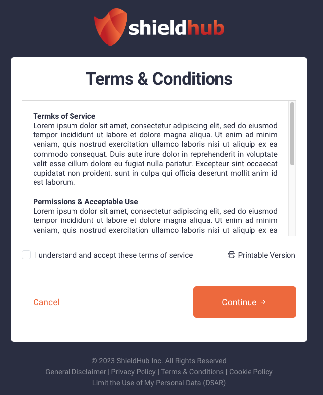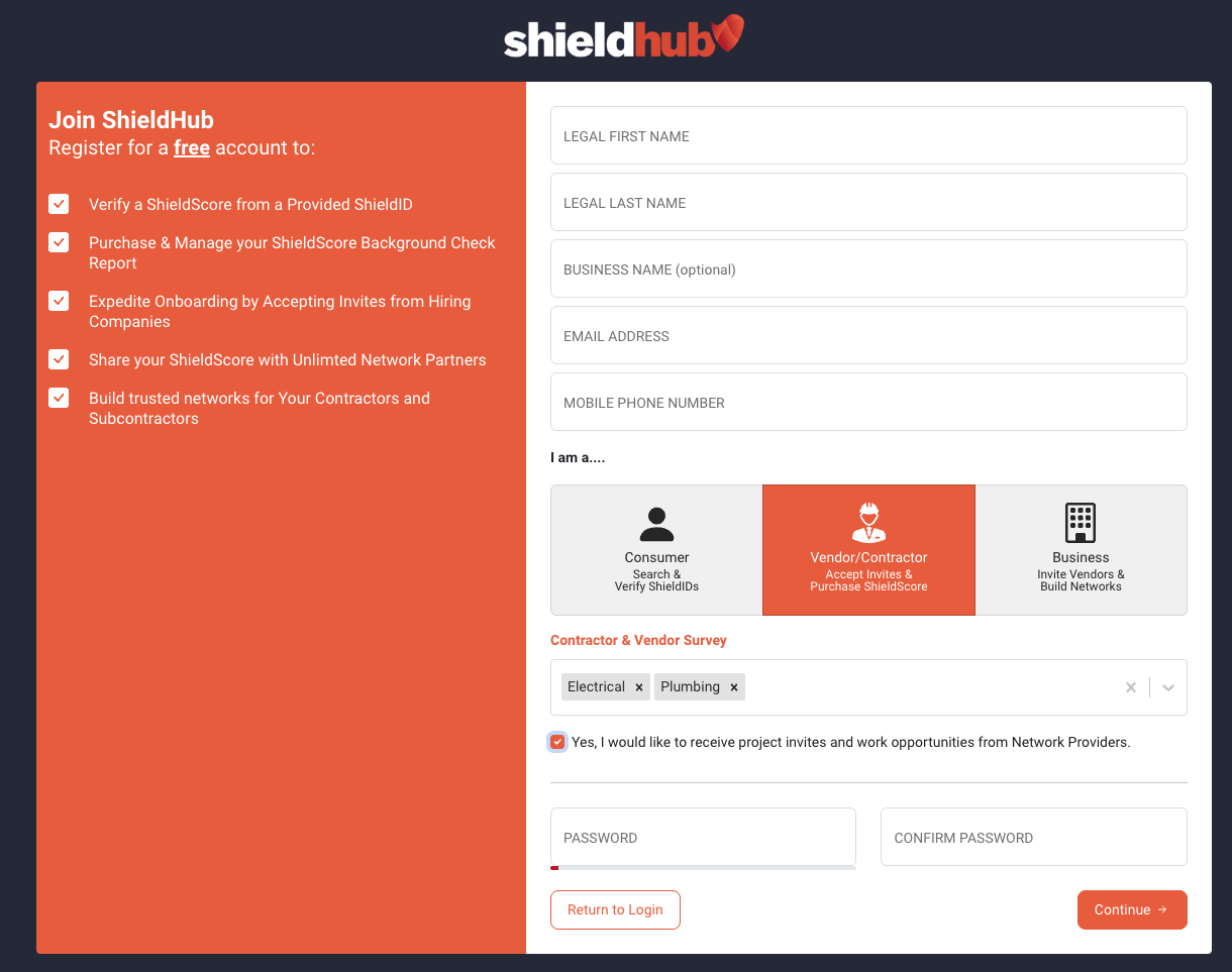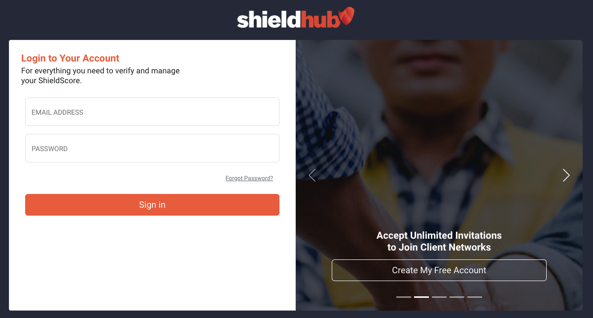 Thank you for registering with ShieldHub! You now have access to all the features of your free account and can begin verifying ShieldIDs, managing background checks, or building your trusted network depending on your account type.