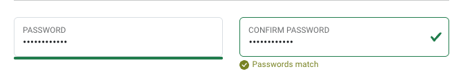 Create a secure password and confirm it. The system will show you a password strength meter to help ensure your account is secure.