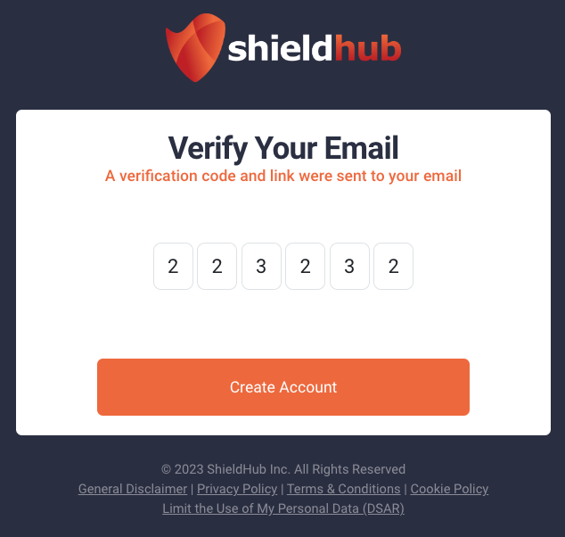 Upon email verification, you'll be automatically logged into your ShieldHub dashboard.