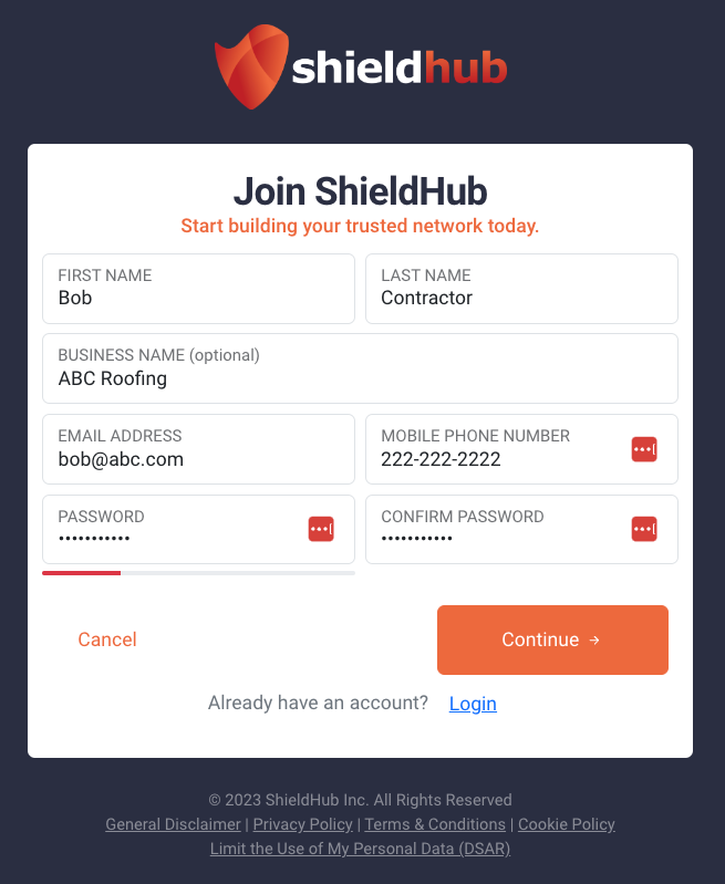 Registering for ShieldHub is free and easy for everyone – whether you're an independent contractor, client, or consumer. Once you registered, you'll be able to:
