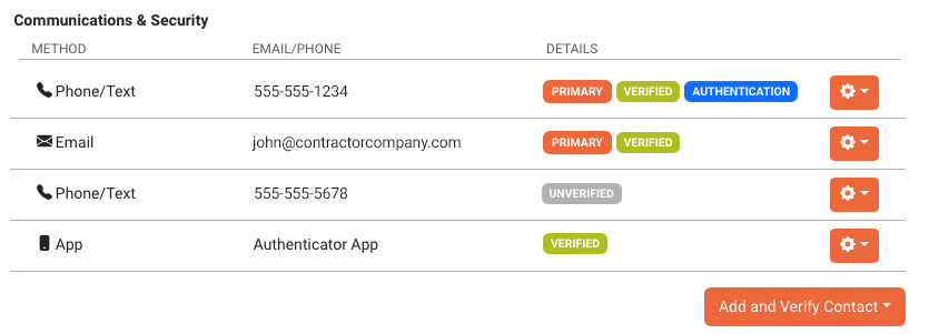 The Communications and Security section of your profile is designed to help you manage your contact details and authentication methods. Your ShieldHub profile supports multiple email addresses and phone numbers. As a ShieldHub user, you can add or remove emails and phone numbers as needed to keep your contact information up to date.