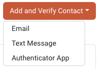 ![]() | Verified points of contact are ones that we have been able to verify that you have access to. To make it easy and simple, you can verify your contact method at the point of adding. Simply enter the code the system send you to verify you have access to that email or phone number.